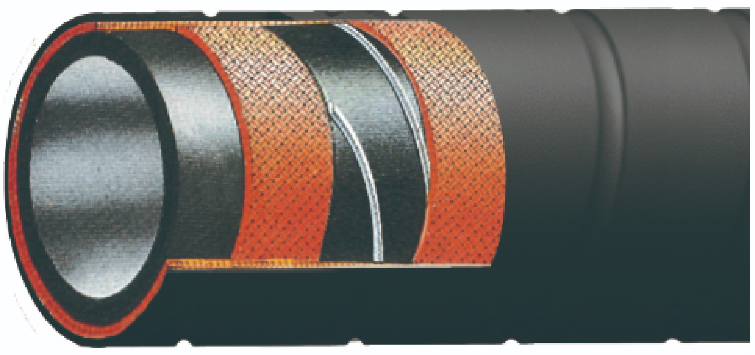 增強(qiáng)層:高強(qiáng)度纖維編織網(wǎng)和雙螺旋鋼絲。